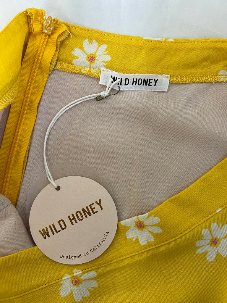 Yellow base skirt with white flowers and a zipper in the back. New with tags.