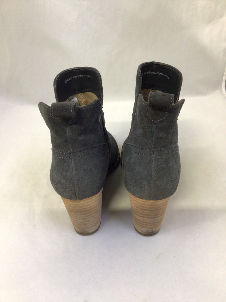 Dark gray, wedge heel booties. Stretchy opening, waterproof suede.