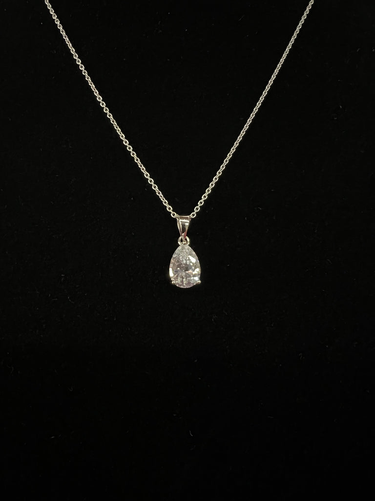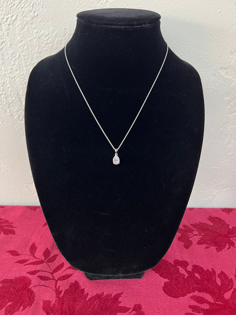 Sterling silver necklace with a teardrop shape diamond.